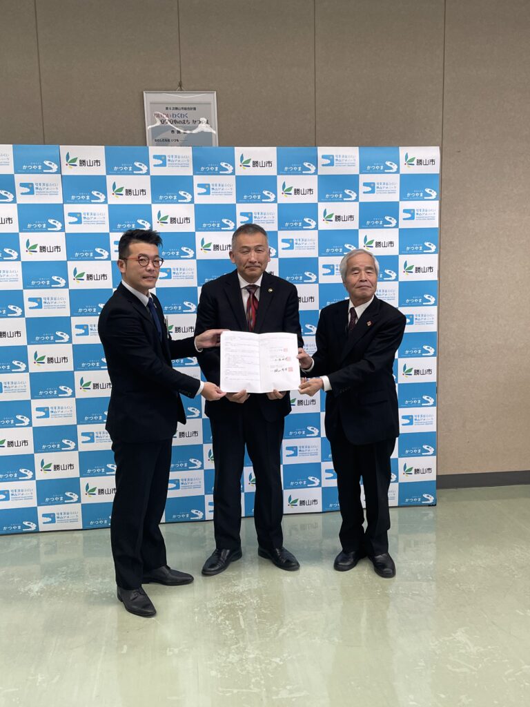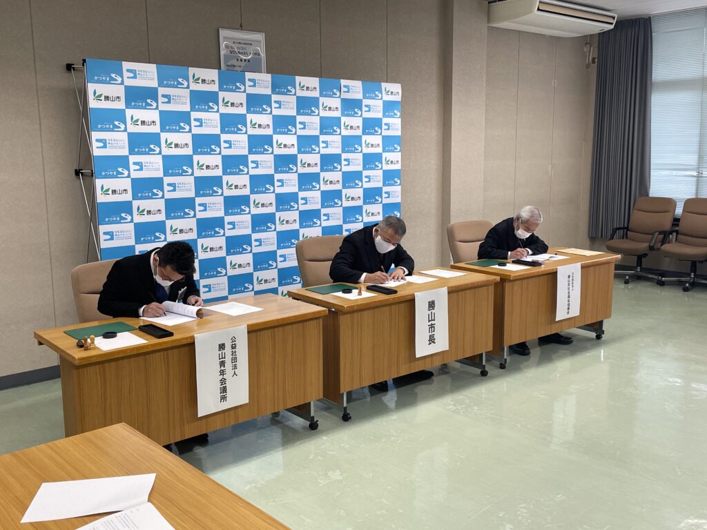 勝山市役所、勝山市社会福祉協議会、勝山青年会議所の3者で、災害時における相互協力に関する協定締結式を行いました。今後は有事、平時共関係を密にし、災害に対する連携を強化したいと考えております。