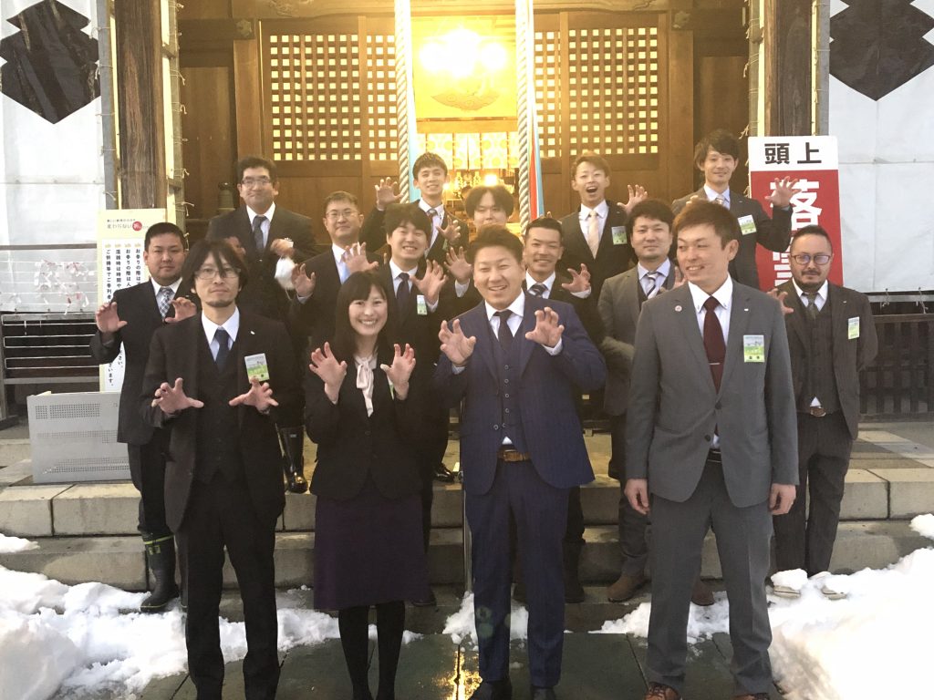 神明神社参拝 2022.01.24 勝山青年会議所では1年の始まりである1月総会の前に地元の神明神社へ参拝しています。 今年もメンバー16人で参拝を行いました。 最後は参加メンバーで記念撮影。 今年も地域のために、勝山のために邁進できるように頑張っていきます。 最後に恐竜ポーズでも。 表敬訪問 前の記事 1月総会を行いました。 次の記事